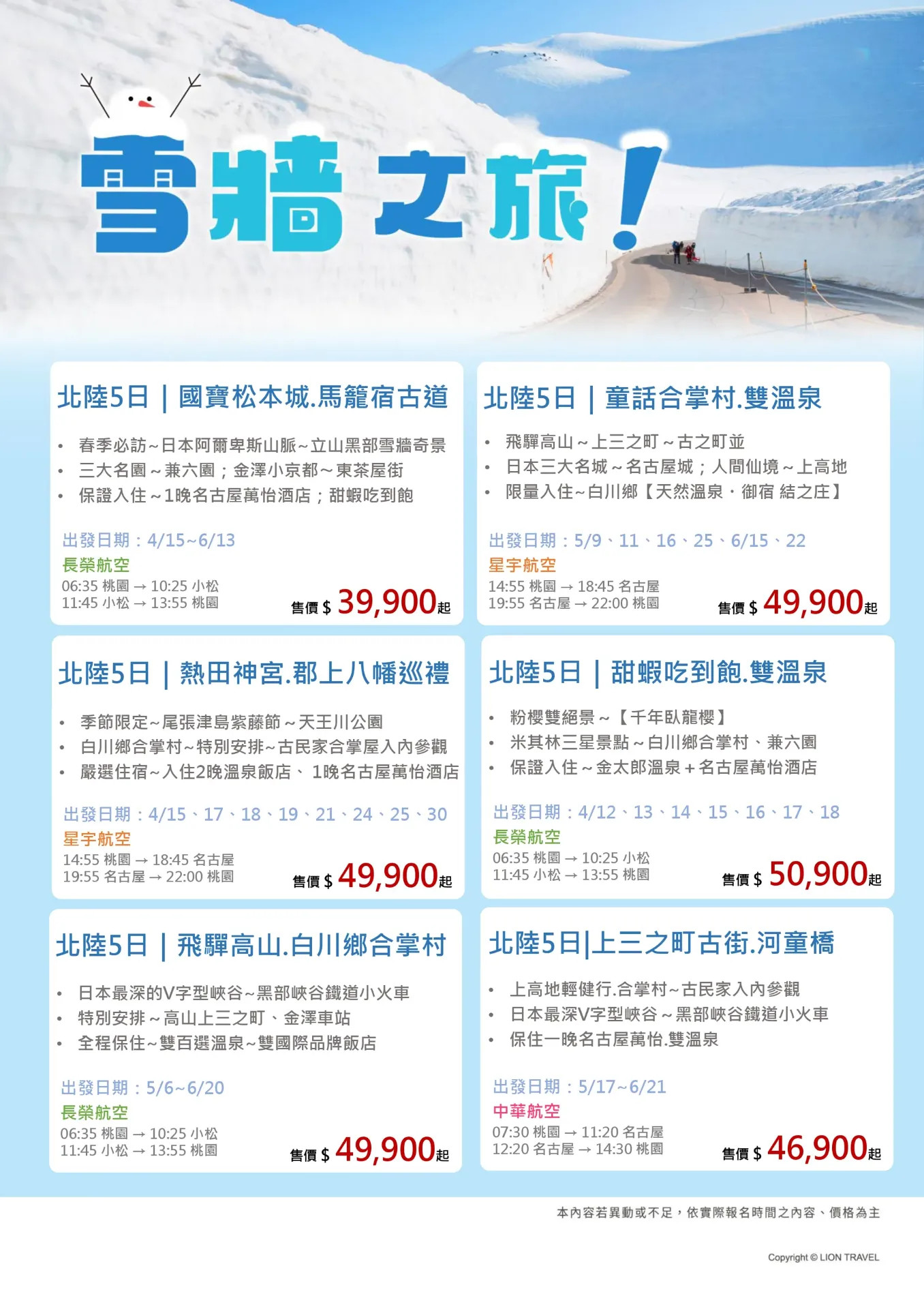 🩵春遊促銷~北陸立山黑部雪牆|天下第一藤~尾張津島天王川紫藤!合掌村.飛驒高山.上高地.郡上八幡巡禮.雙溫泉五日|保住萬怡